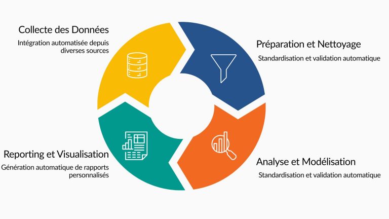 La transformation des processus financiers avec Alteryx suit un cycle complet qui révolutionne chaque étape du traitement des données. De la collecte initiale à la visualisation finale, l’automatisation apporte une cohérence et une efficacité sans précédent aux opérations financières.