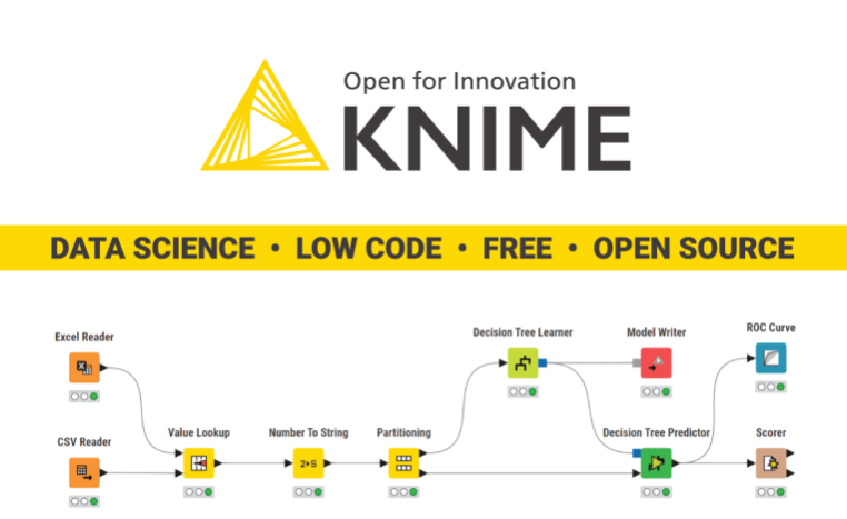 Free & Open Source : KNIME Analytics Platform est un logiciel gratuit et open source conçu pour être un logiciel de code accessible au public, pour la création de workflows et d’applications d’exploration de données.