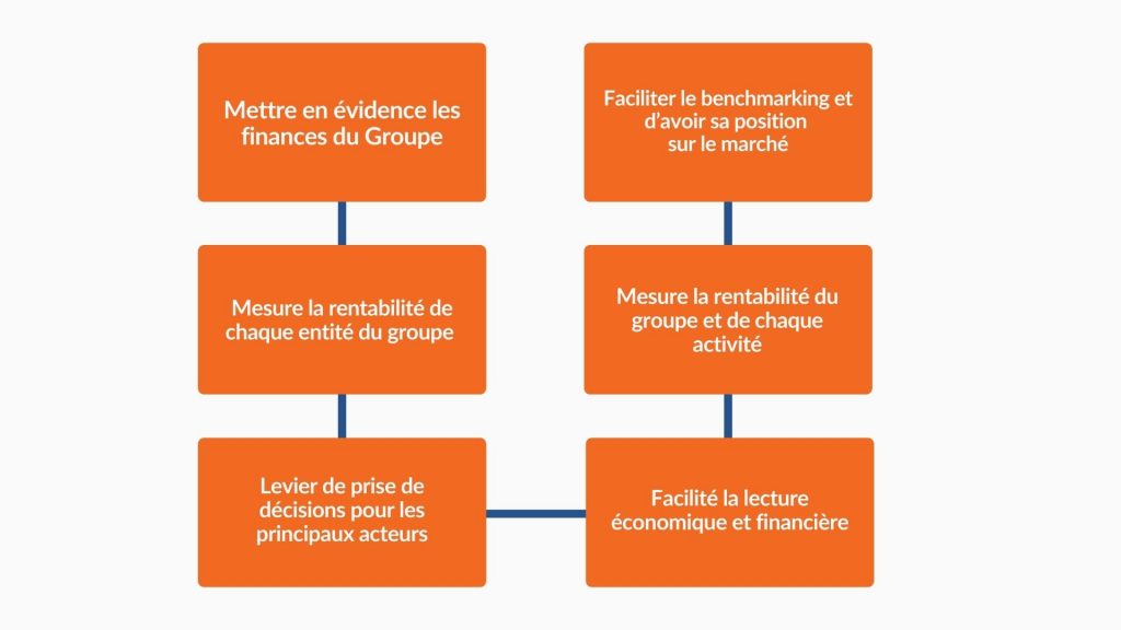 En résumé, les comptes consolidés mettent en évidence les finances du groupe, facilitent la lecture économique et financière, ils permettent de mesurer la rentabilité du groupe, aussi celle de chaque entreprise et de chaque activité. Ainsi, les principaux acteurs ont des leviers de prise de décisions stratégiques et, surtout par le processus de benchmarking, pouvoir de situer la position du groupe sur l’échiquier des marchés financiers, particulièrement pour les grands groupes.